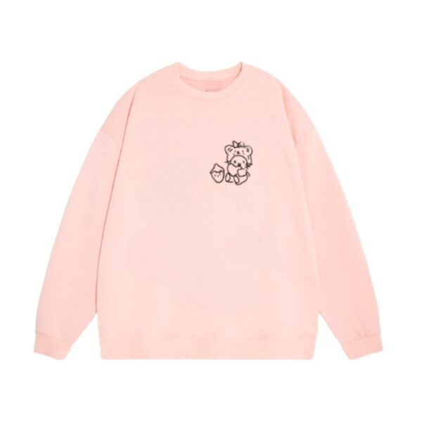 Cartoon Teddy Bear Cotton Sweatshirt Pink