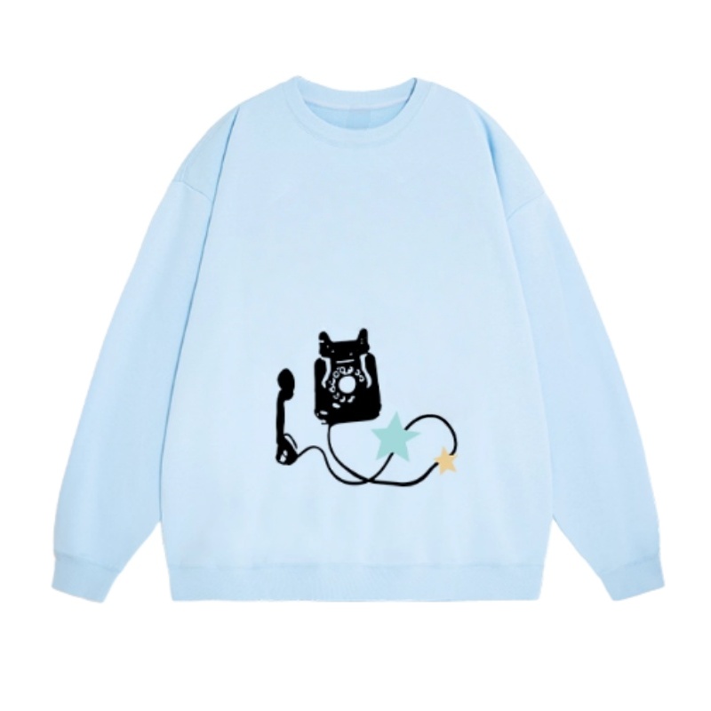 Retro Kitten And Telephone Print Stylish Sweatshirt